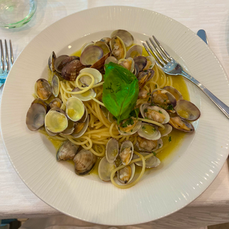 For lunch, we recommend going back down the hill to Hostaria del Vicoletto—don't let the strange ambiance put you off, this was probably the best seafood pasta we had the whole trip. They also bring you several free items like bread, olives, pickled anchovies, and cookies (and yes, they're actually free). All around, great lunch spot!